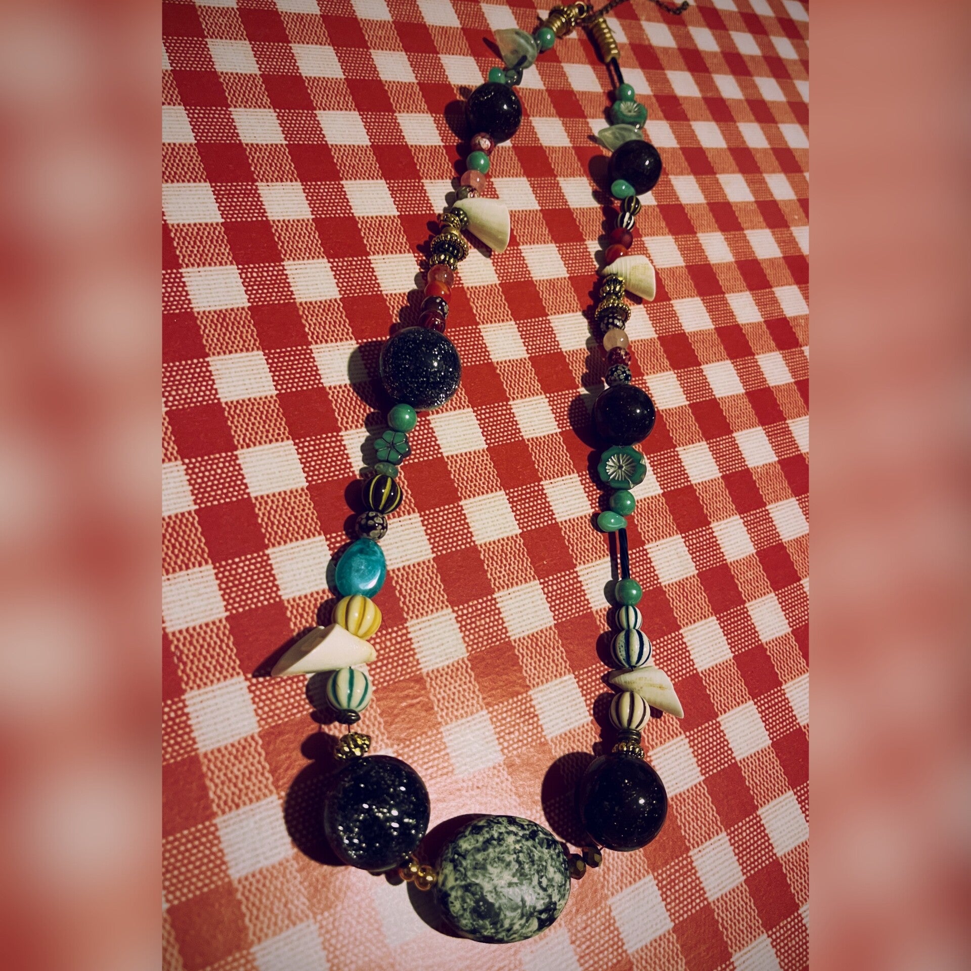• Perles en cornaline et turquoise naturelle : elles ajoutent des accents chauds et frais, symbolisant les nuances d’un coucher de soleil à l’horizon.