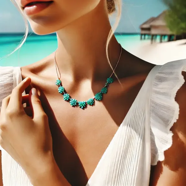 • Collier Lagon Bleu : Avec des turquoises vibrantes, il évoque les eaux limpides des criques méditerranéennes.