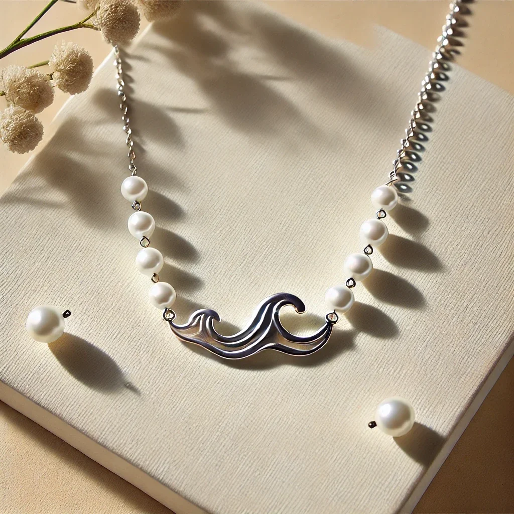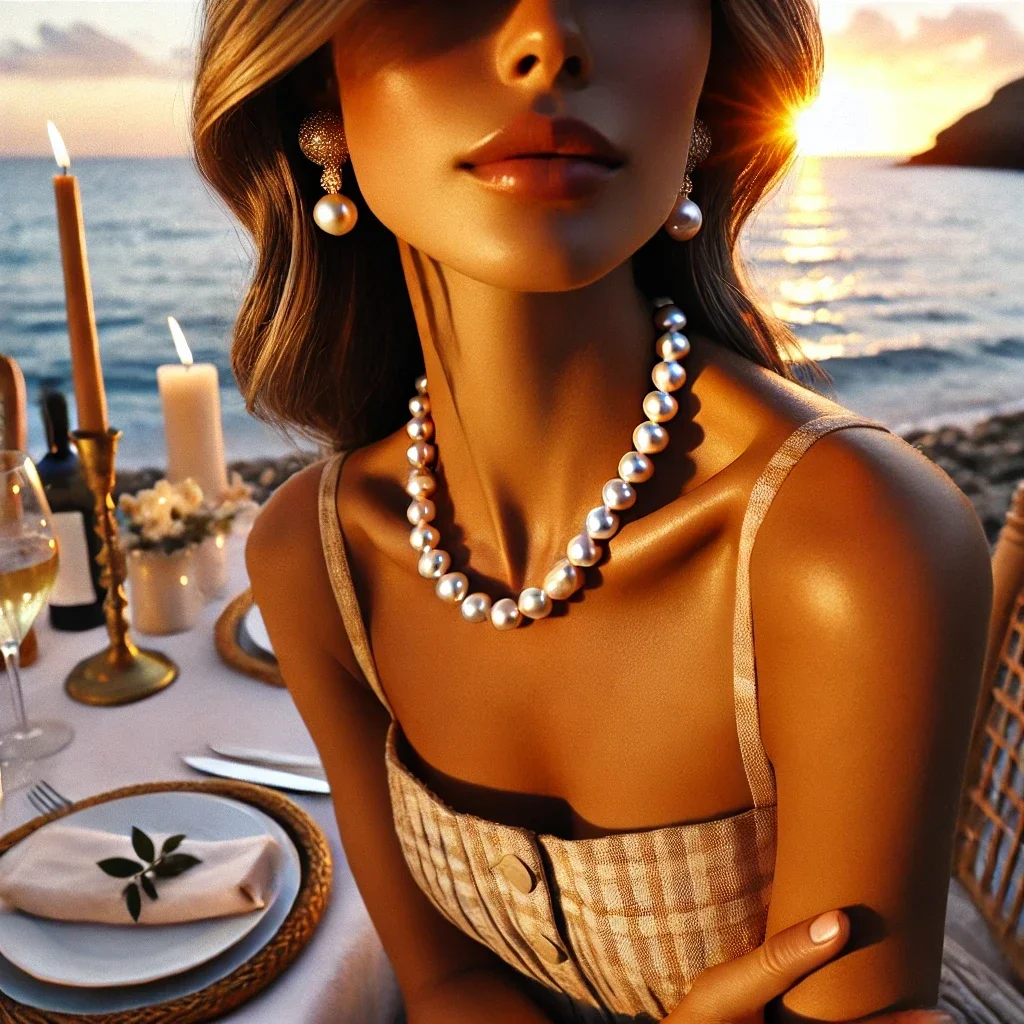 • Collier Éclat de Perle : Inspiré par la lumière douce du soleil sur les vagues, ce collier fin met en valeur des perles de culture naturelles suspendues sur une chaîne dorée.