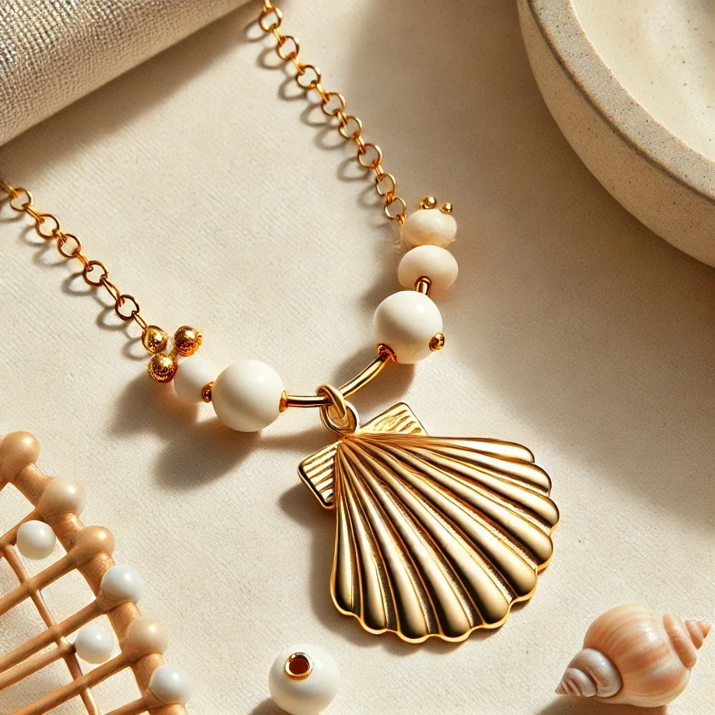 • Collier Aube Corse : Inspiré des premières lueurs du jour sur les falaises corses, ce bijou marie élégamment des coquillages et des pierres naturelles.