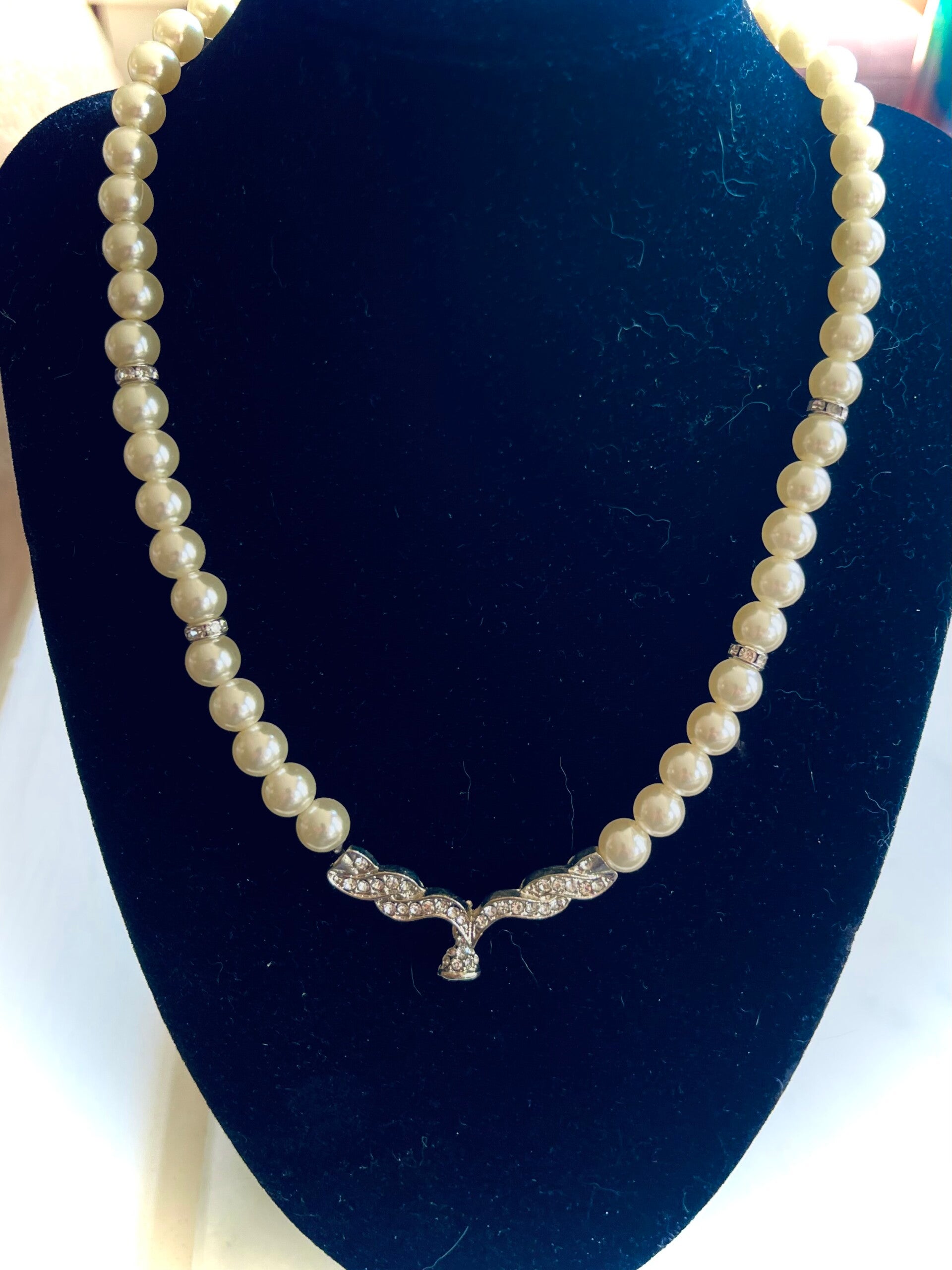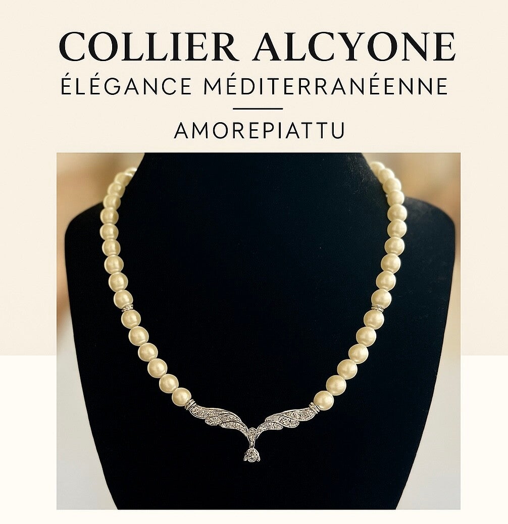 Le Collier Alcyone tire son nom d’une étoile brillante et d’une figure mythologique liée à la mer et au ciel. Ce bijou d’exception réunit l’éclat naturel des perles d’eau douce à la délicatesse d’un pendentif central aux lignes organiques, évoquant des ailes ou une vague stylisée, sertie de cristaux étincelants.