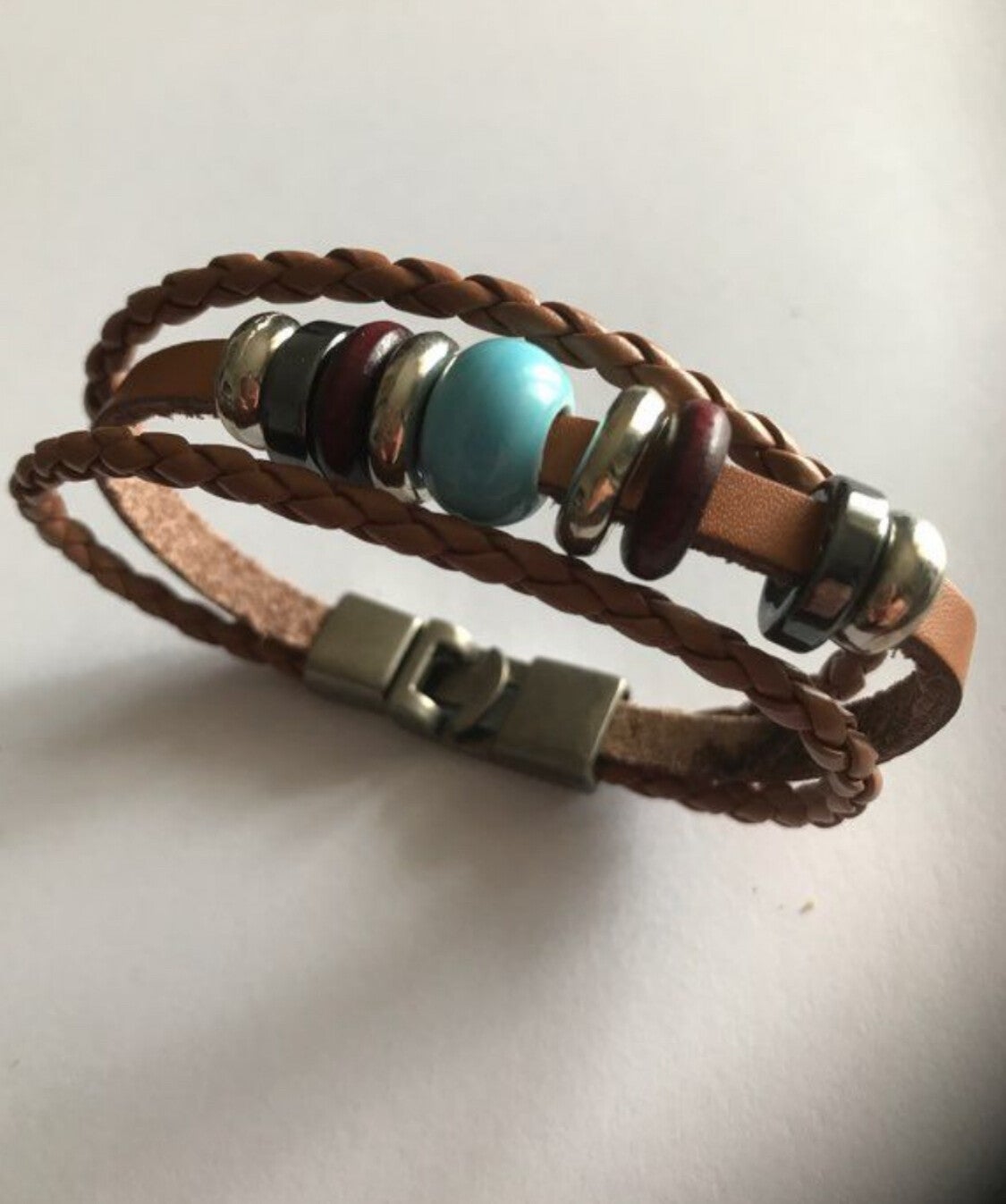 - Une perle centrale turquoise effet céramique, qui capte la lumière et évoque la mer et les voyages