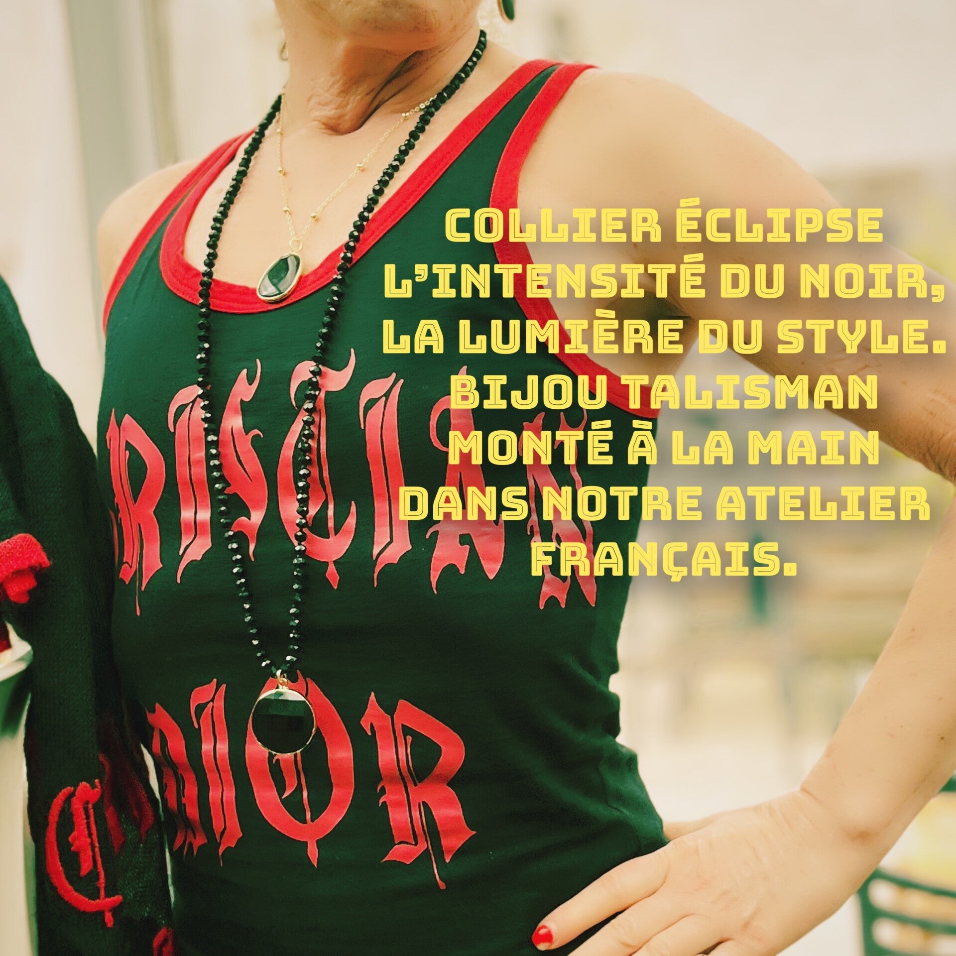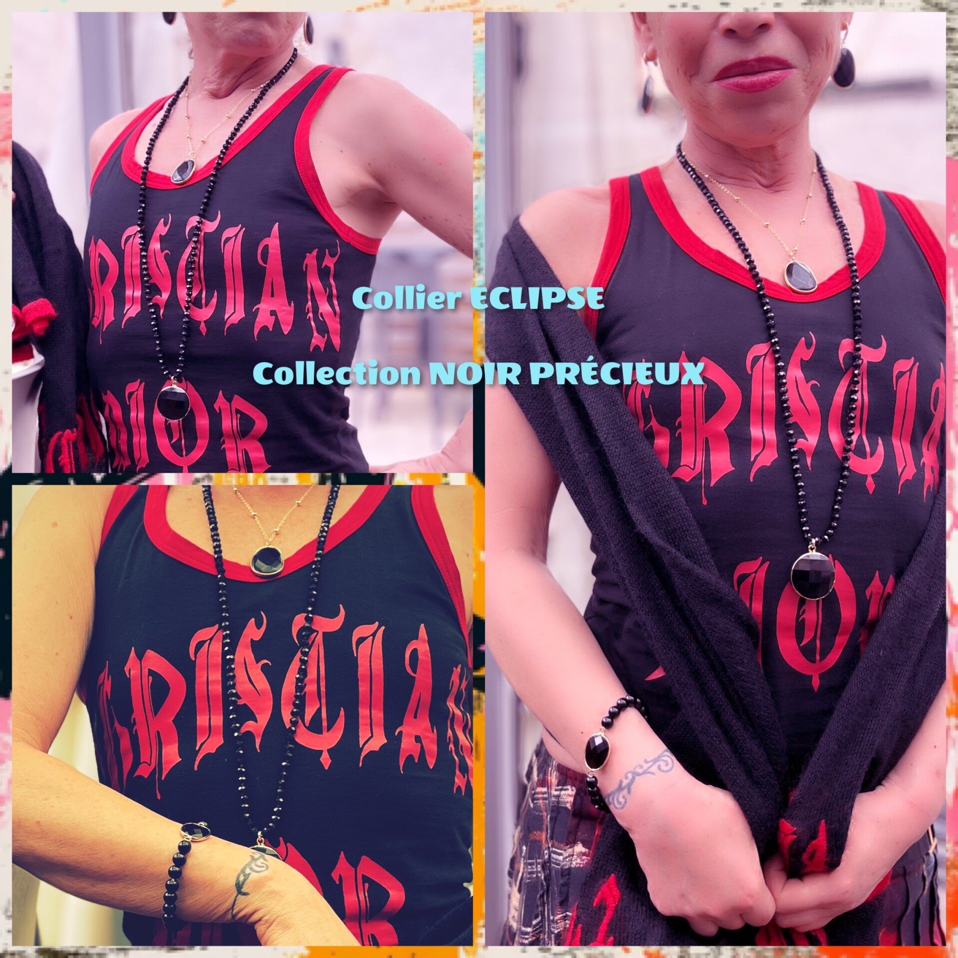 La parure Éclipse – Noir Précieux incarne un équilibre parfait entre intensité et éclat. Cette composition précieuse réunit deux colliers superposables, un bracelet élastique perlé et une paire de boucles d’oreilles pendantes, pour un effet total look à la fois élégant, mystérieux et résolument moderne.