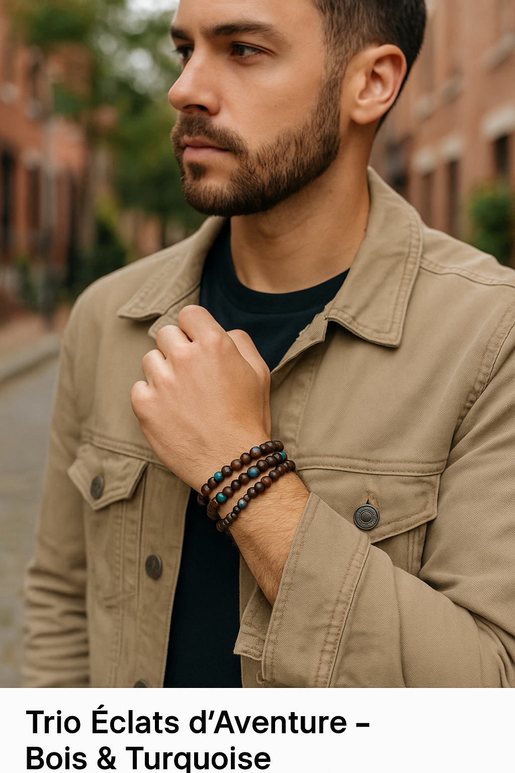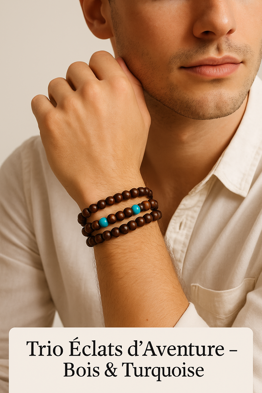 Bracelet Trio Éclats d’Aventure – Bois & Turquoise